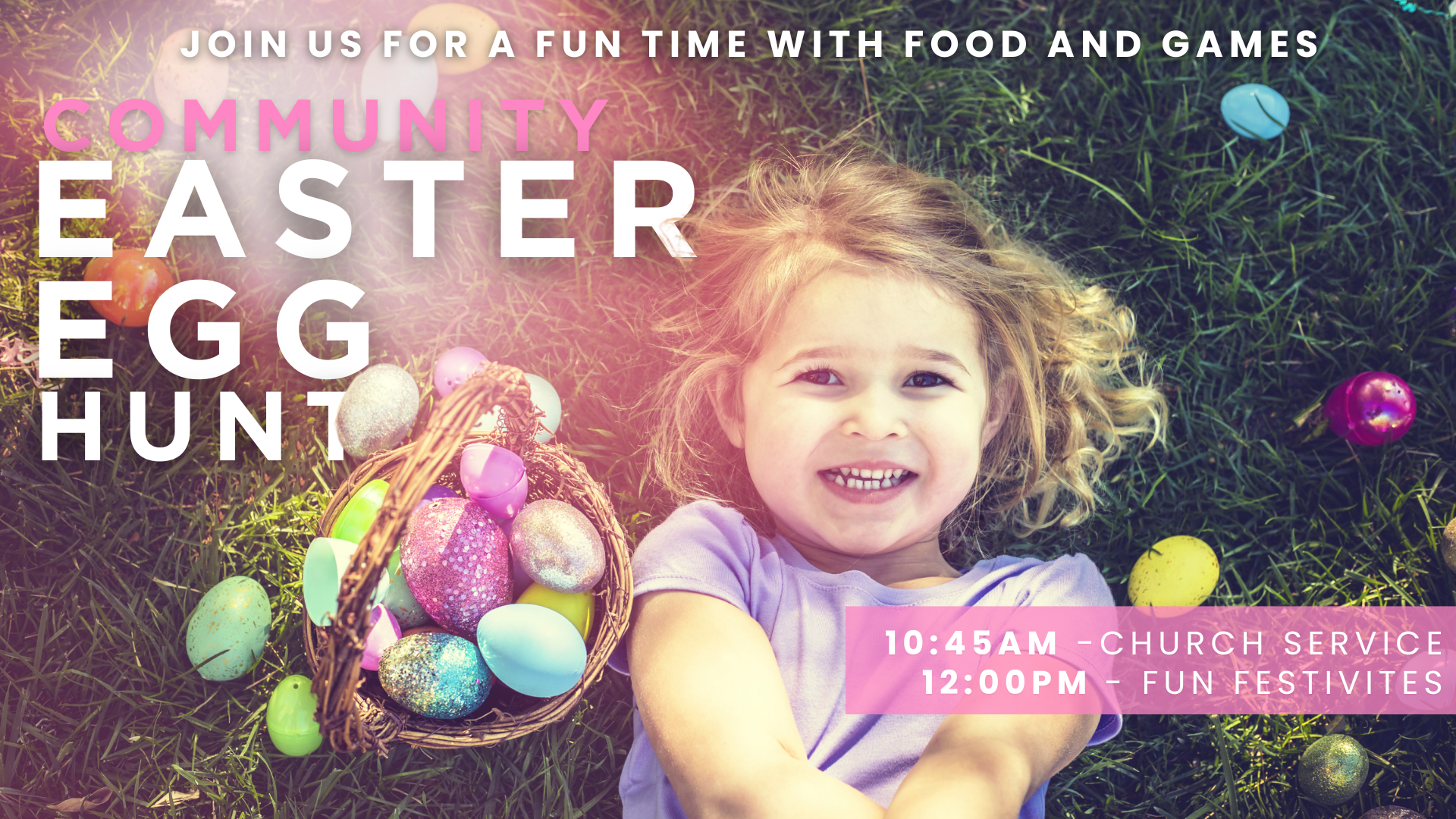 After service, we invite everyone to stay for a family friendly event with a Easter Egg hunt, golden eggs, cash prizes, grand prizes, and over 5000 eggs!! A Hotdog lunch is provided. The Egg Hunt begins at 12:30pm.